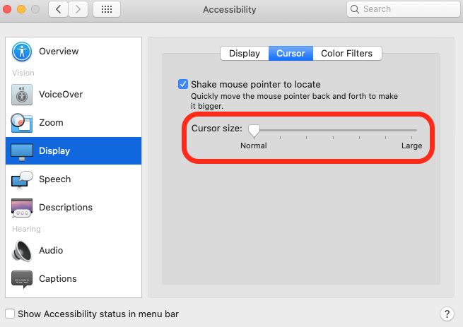 - 向右拖动滑块可使 Mac 光标永久变大。