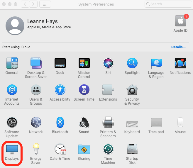 - 单击苹果菜单在 Mac 上,单击系统偏好设置,然后单击显示器。