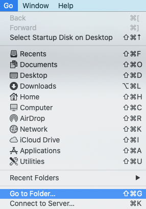 - 打开发现者然后单击去, 然后转到文件夹在菜单栏上。