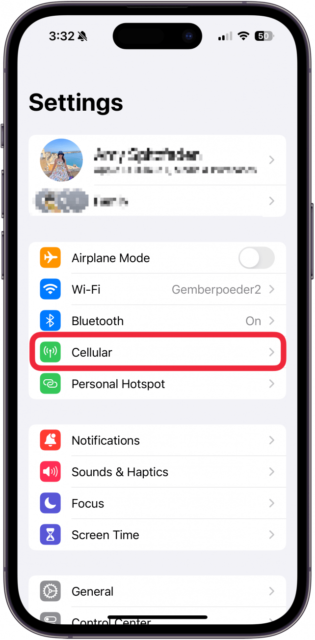 - 在你的设置应用程序, 轻敲蜂窝网络。