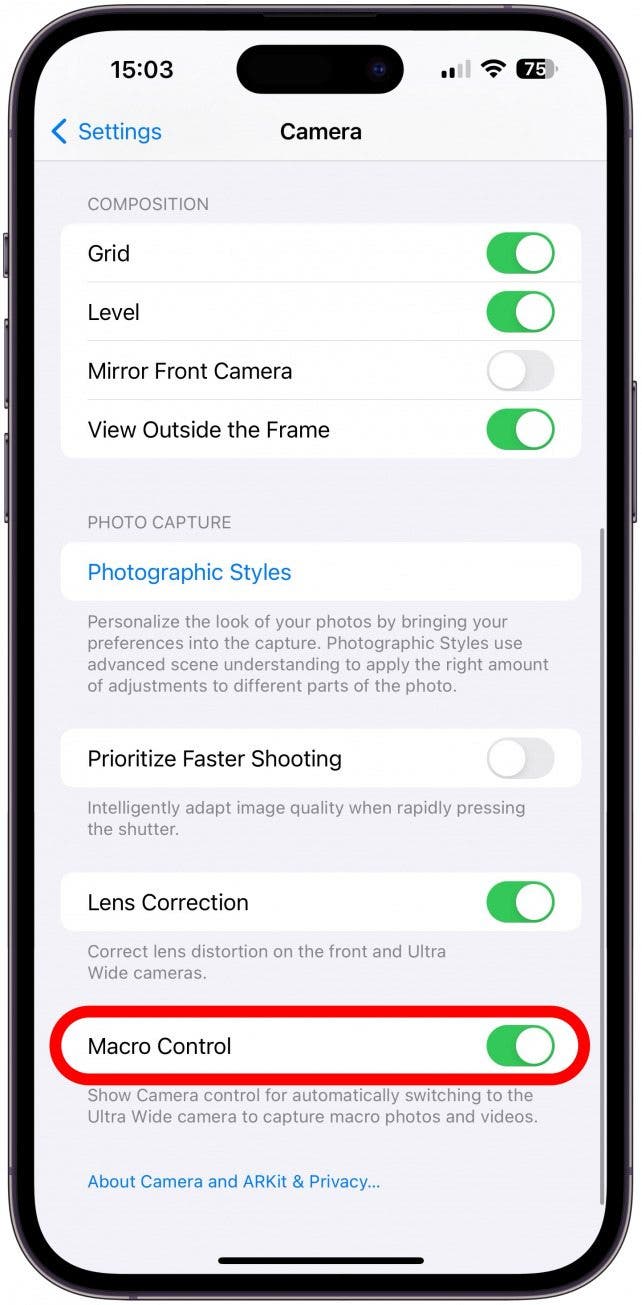 - iPhone 上的闪烁可能是由镜头自动切换引起的。如果您有 iPhone 13 或 14 Pro,您需要查看您的设置并这样你就可以看到微距模式是否是罪魁祸首。