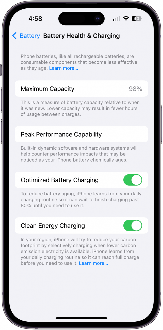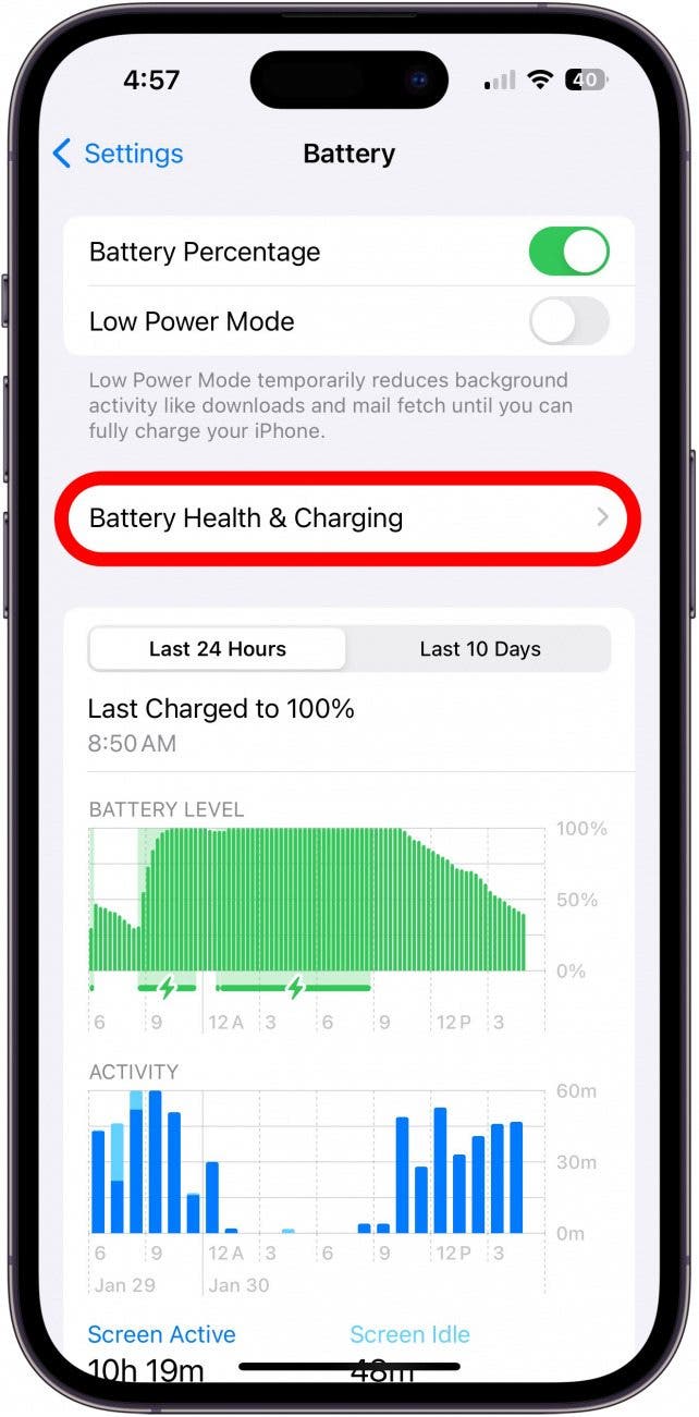 重新启动 iPhone 是一种常见的修复方法,但即使这似乎确实解决了问题,我也建议检查您的设备iPhone 电池健康状况在下面的部分中。这很重要,因为您的 iPhone 随机关闭可能表明电池容量减少。