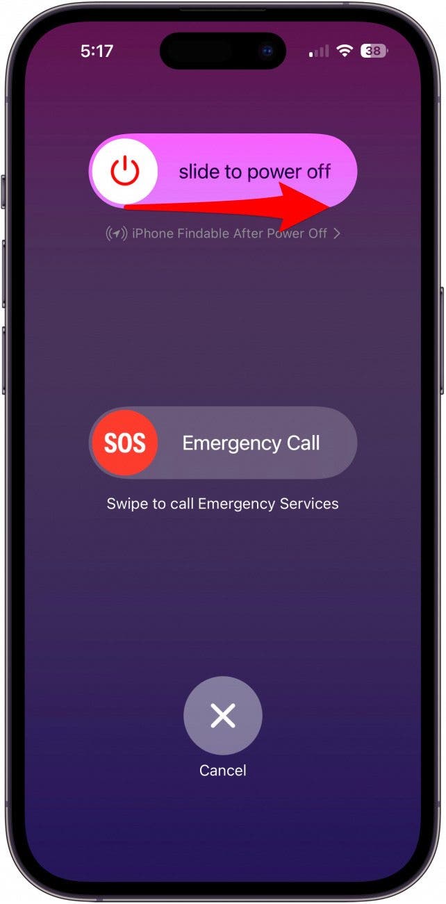 - 按住侧边按钮直到出现关机画面,然后滑动以关闭电源你的iPhone。