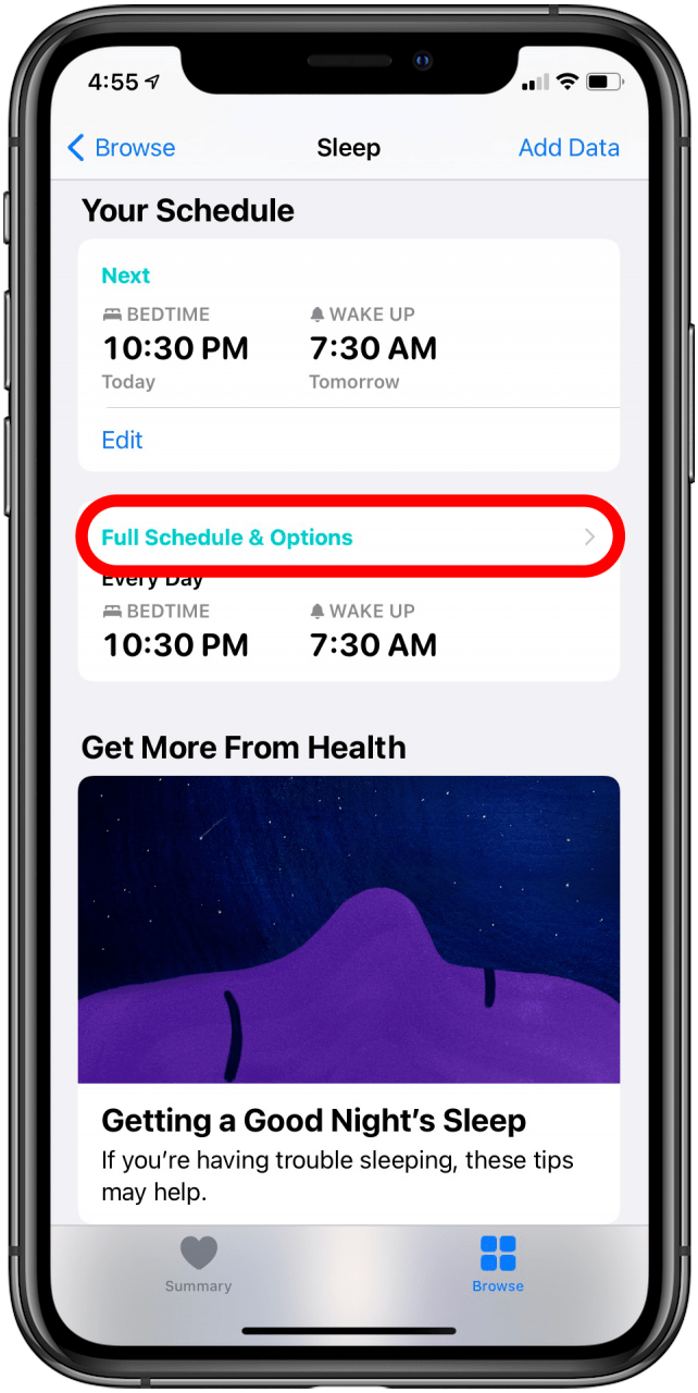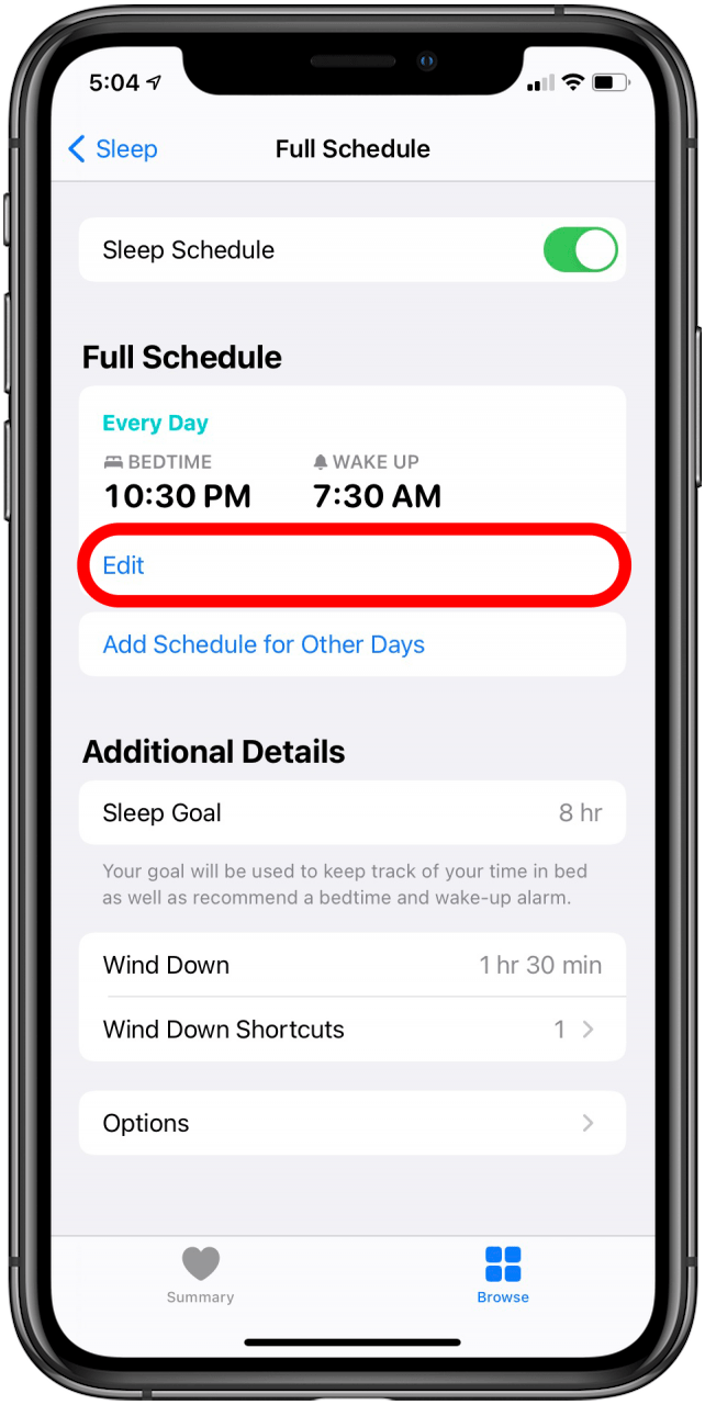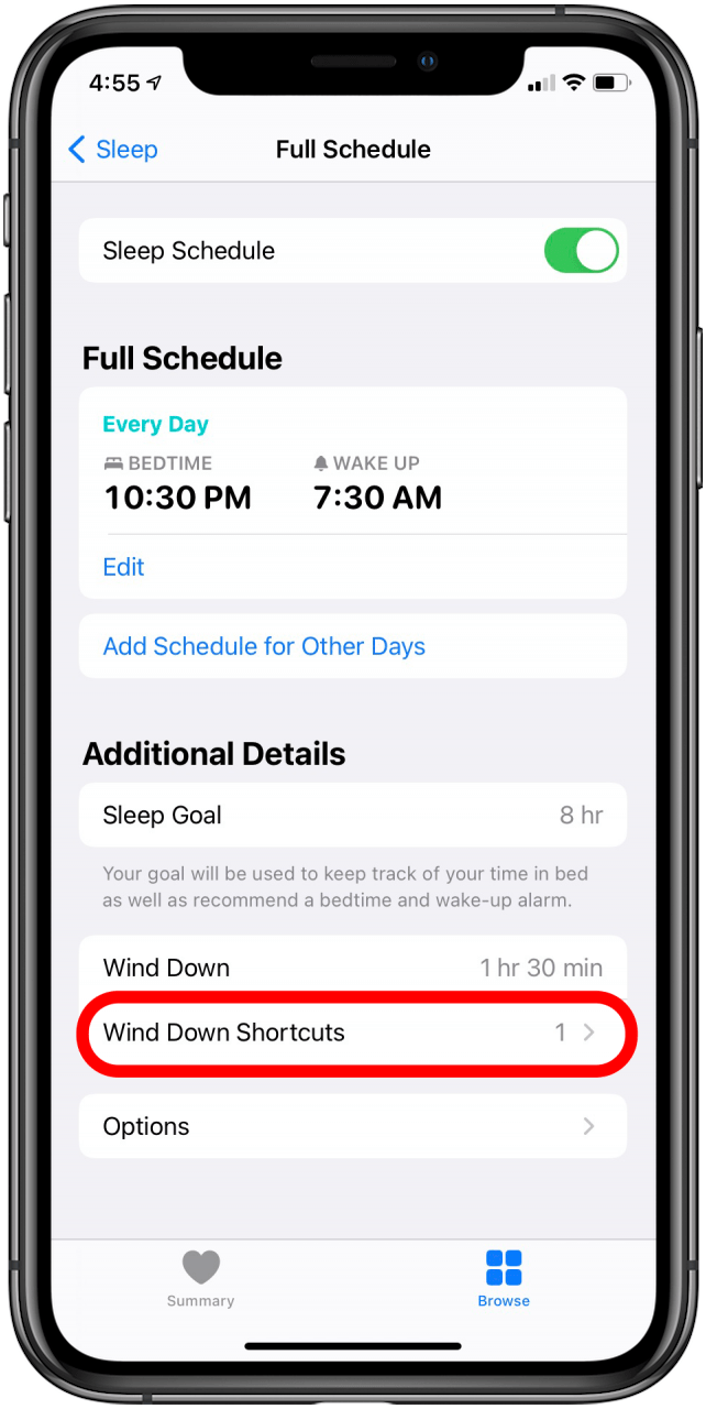如果您已经尝试了所有这些方法,但仍然不喜欢手机上有睡眠时间表,您可以完全删除睡眠时间表。为此: