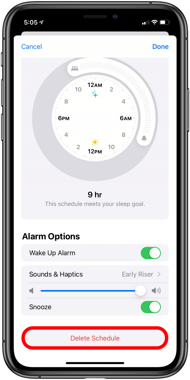 - 对您想要删除的所有睡眠时间表重复此操作。如果您改变主意,可以随时重新设置。